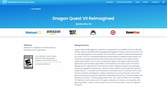 ESRB评级机构详细说明了《勇者斗恶龙7 重制版》获得E10+评级的具体理由。
