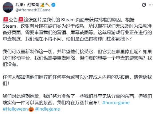 该团队明确表示,他们并不排斥其他面向成人的项目,只是希望平台能对所有游戏项目实施统一且明确的规则。