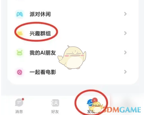 1. 打开发现页,点击“兴趣群组”这一选项。