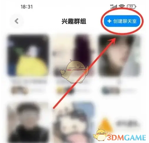 2. 来到兴趣群组页面,点击“创建聊天室”的图标。