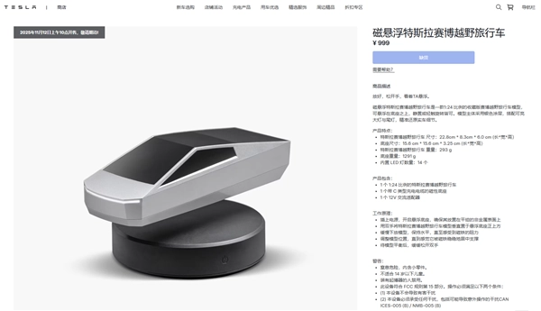 11月10日消息,去年12月,特斯拉曾在海外推出一款磁悬浮Cybertruck车模,该产品一上市就很快卖完了。