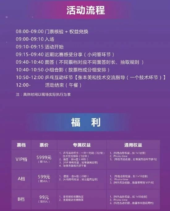 除此之外,购买5999元票档的观众还能获得与张本美和共进午餐的机会,“这样可以拥有更充裕的个人互动时间。”相关工作人员介绍道。总体来看,5999元票档的核心差异在于能够参与更多面对面的互动环节。