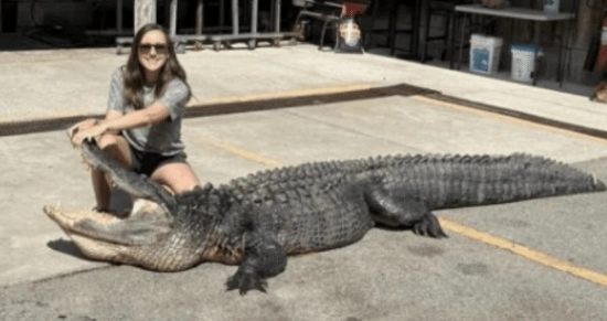 近日,美国南卡罗来纳州的布列塔妮·利文斯顿在产假即将结束之际,和家人一同外出狩猎时,成功捕获了一条体长3.6米、体重271公斤的巨型鳄鱼。