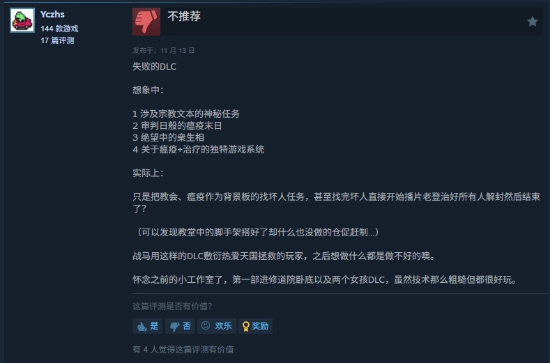 给出好评的玩家表示,游戏本体的质量十分扎实,DLC也具备独特的风格与亮点。
