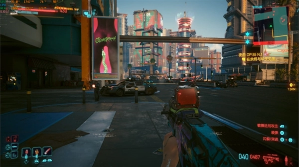 在夜之城闲逛,帧率稳定在80FPS上下浮动,顺得出乎意料,操作手感也非常跟手。而像街头战斗等场景下,随着敌方人数的增加,帧率会有所浮动,大概在65-70FPS之间。