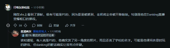 持怀疑态度的网友提出了两点质疑:其一,教室墙壁上时钟显示的时间和比赛实际开展的时间不一致;其二,直播过程中主播danking偶尔会说出粗俗的言语,这类内容被大众认为不适合中学生观看,所以学校应该不太可能允许这样的内容播出。