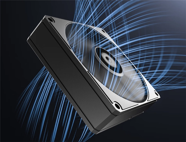 风扇采用一体式扇框搭配降噪扇叶的设计,叶片宽度较之前增加25%,拥有更大的表面积,这有利于提高散热效率,在让整体风量和风压得到增强的同时,还能进一步降低噪音。