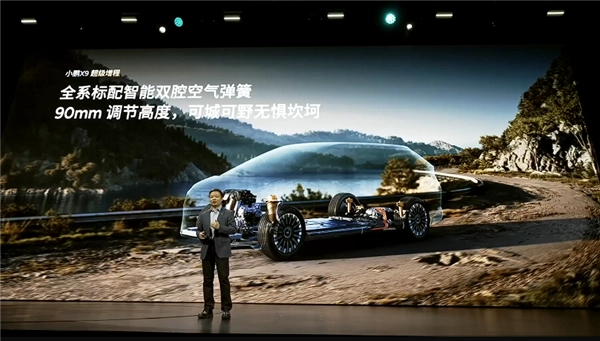 该车还全系标配主动后轮转向,最小转弯半径靳5.4米,全系标配智能双腔空气悬架,拥有90mm的可调范围,可城可野。