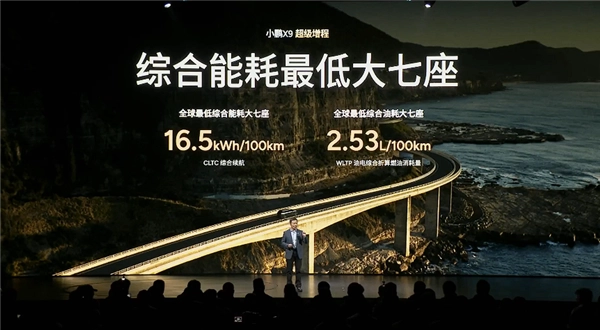 动力表现上,这款车抢先搭载了小鹏鲲鹏超级增程系统,该系统由1.5T发动机与电机共同构成,整车综合能耗仅为16.5kWh/100km。与此同时,它还创下了全球大七座车型综合油耗的最低纪录,在WLTP工况下,油电综合折算油耗约为2.53L/100km。