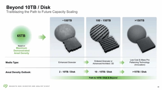 根据希捷的路线规划,到本世纪30年代,硬盘单碟容量密度有望突破7TB,未来更将朝着单碟15TB乃至更高的目标迈进。
