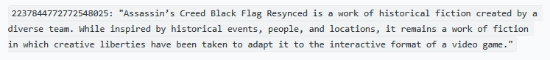 据了解,这段文字其实是育碧标志性的“免责声明”内容:“《刺客信条:黑旗 重新同步版(Assassin's Creed Black Flag Resynced)》是由多元团队打造的历史虚构作品。虽然创作灵感源自真实的历史事件、人物与地点,但它本质上仍属于虚构作品,为适配电子游戏这一互动形式,创作过程中进行了富有创造性的改编。”