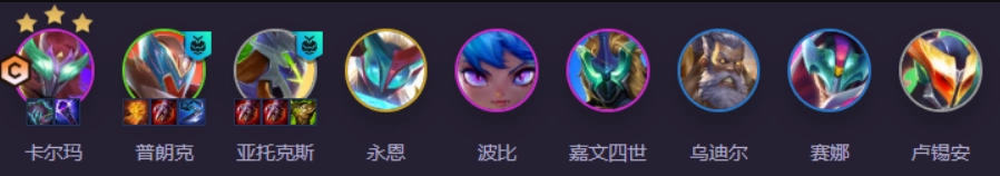 2、8级大搜卡池找到6超级战队阵容,只要血量还在50以上,就能轻松过渡上9级,再找永恩来开出7机甲羁绊。