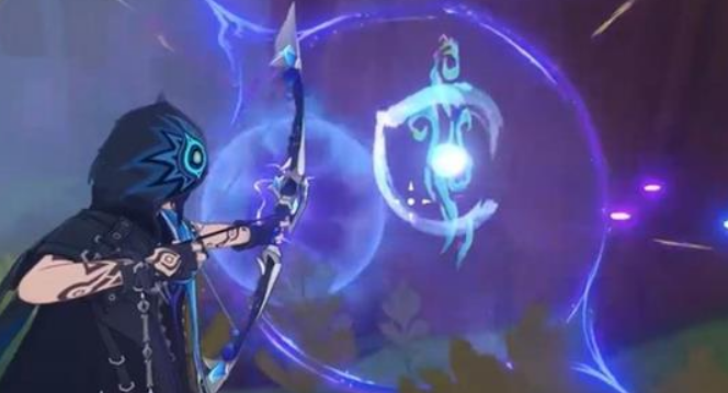 欧洛伦能够施展三段连续的弓箭射击,其重击会在箭矢上附着雷元素,从而形成威力强劲的瞄准射击。当玩家长按瞄准按钮时,便会进入灵觉状态,在此状态下,角色可从灵谜涂鸦与灵谜纹里汲取能量,使每一支箭矢的威力都得到显著增强。而在空中发动下落攻击时,欧洛伦还可以释放箭雨,以此造成范围性伤害,能够有效应对聚集在一起的敌人。
