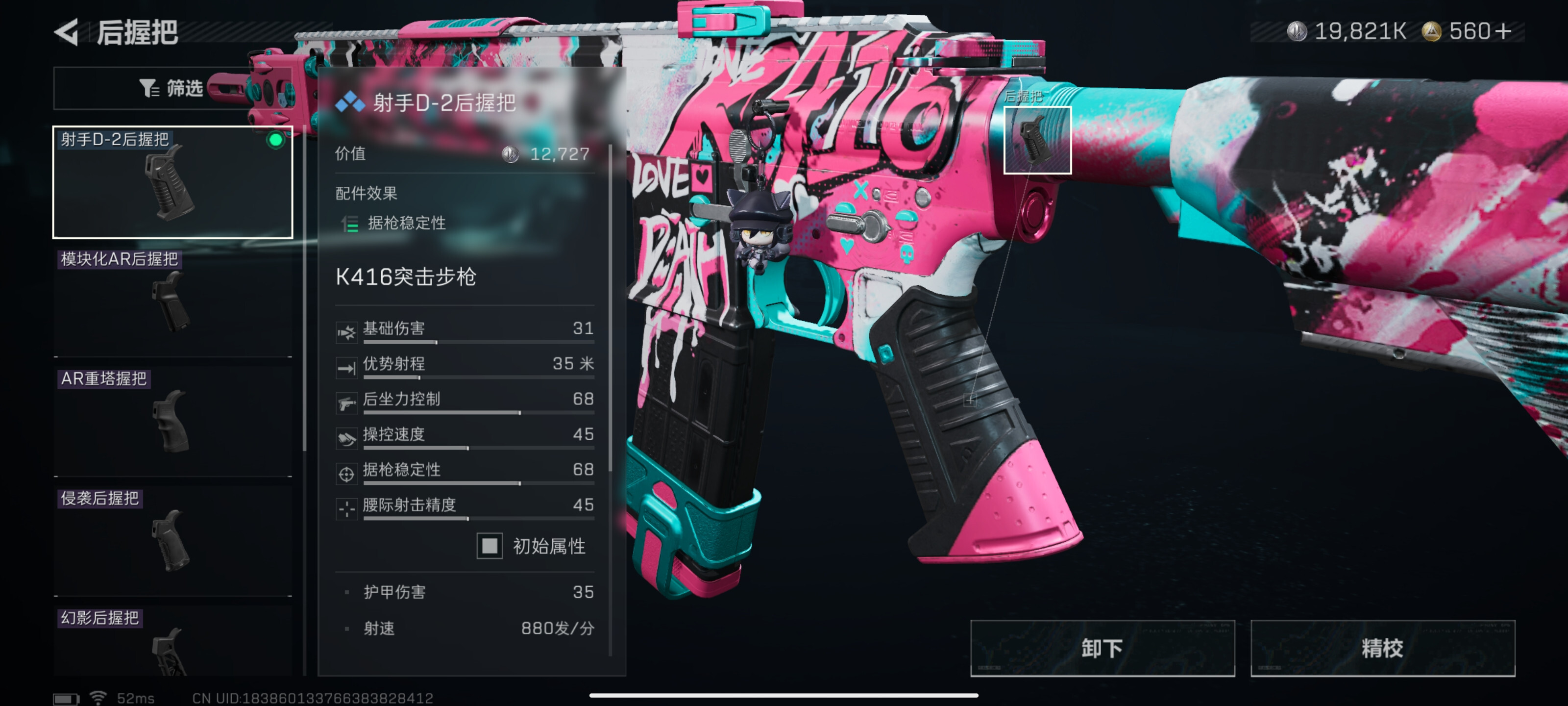 后握把建议选用射手D—2型号,该握把具备不错的据枪稳定性。经过精校处理后,它与未精校的高属性握把在属性收益方面几乎没有差别。