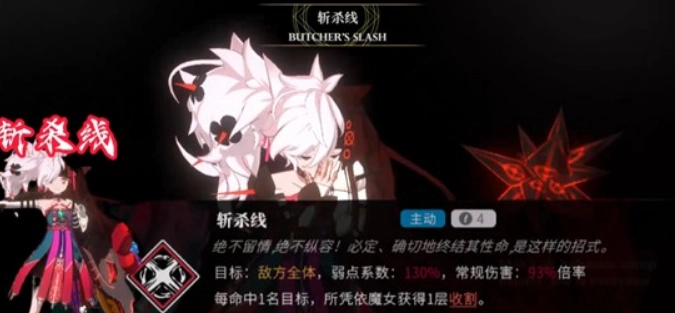 牧的核心技能“斩杀线”拥有五回合的冷却周期,每次释放能对所有敌人造成相当于自身基础攻击力89%的伤害,同时附加33点弱点伤害。此技能的特殊机制在于,目标身上每叠加一层收割效果,就能让弱点伤害额外提高5%——这也就意味着,当敌方单位存在多层收割状态时,牧的群体输出能力会得到显著增强。特别是在对抗弱点值较高的BOSS时,这套机制既能有效实现破防,又能达成高效压制,让她在需要群体攻击的战斗场景中展现出格外亮眼的表现。
