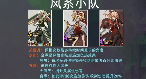 大风天:增加风属性伤害 合纵:触发弹指8次后施加易伤效果,使目标受到的伤害提高20%