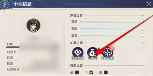 2、进入个人主页后,找到并点击礼包码选项。