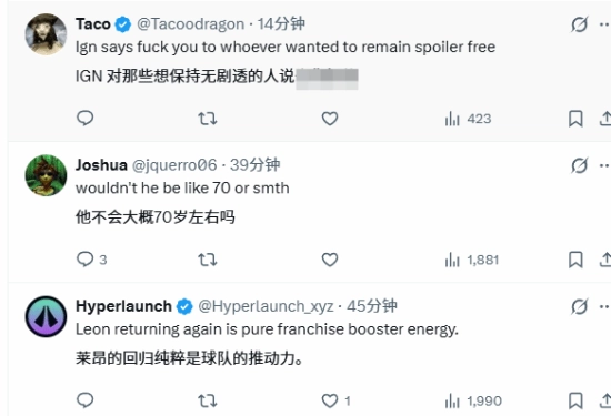 这段内容随后在网友中引发了热烈讨论:大家纷纷调侃“这种泄露风格一看就是卡普空的手笔”,同时也有人对里昂的年龄表示担忧——毕竟他都快70岁了,还能像以前那样身手矫健地战斗吗?