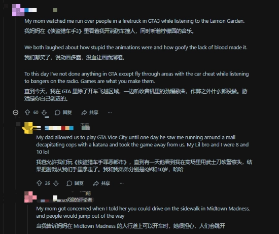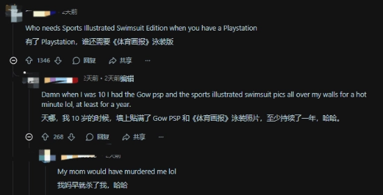 除此之外,玩家们还纷纷回忆起自己童年时收藏的泳装海报,以及在玩GTA时挥武器被父母撞见后游戏机遭没收等一系列满是回忆的场景与往事。