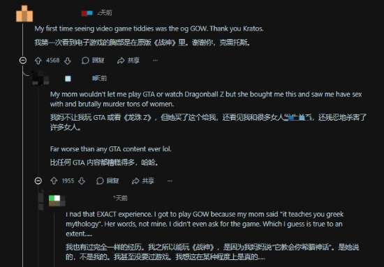 看到这类帖子,不少玩家在评论区直言:《战神》堪称我的启蒙导师。尽管这份启蒙的意味有些微妙,但很多玩家表示,在游戏中遇到这类画面时,便明白这会成为一段深刻的记忆。