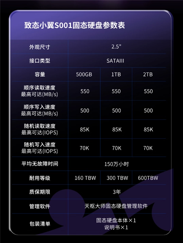 12月10日消息,致态旗下子品牌“致态小翼”的第二款产品——S001 2.5英寸SATA固态硬盘已正式发售。