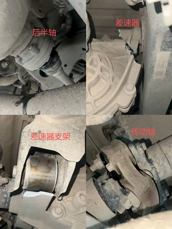 前段时间,他想在路边试试弹射起步。操作时,他先踩住刹车,再轻踩油门,大概过了3秒钟。可刚一起步,就听见一阵异响。下车检查后发现,后桥差速器断了,传动轴也有变形。