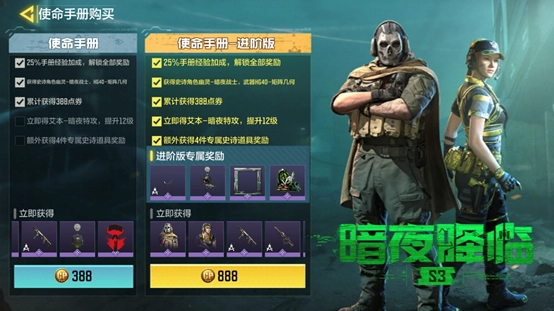 购买使命手册的条件是充值,解锁全部奖励需39元,另有进阶版售价89元,进阶版包含更多内容,但仅为解锁使命手册奖励的话,39元的基础版就足够了。