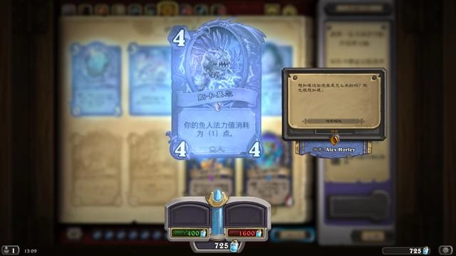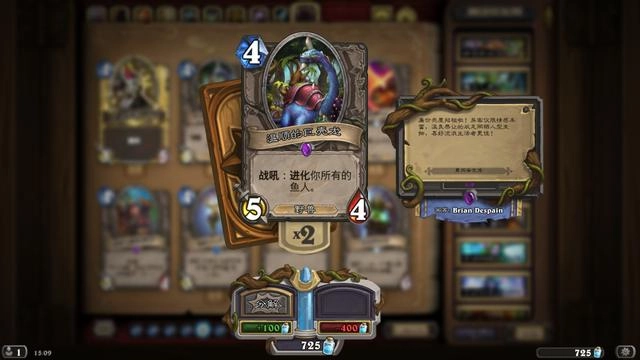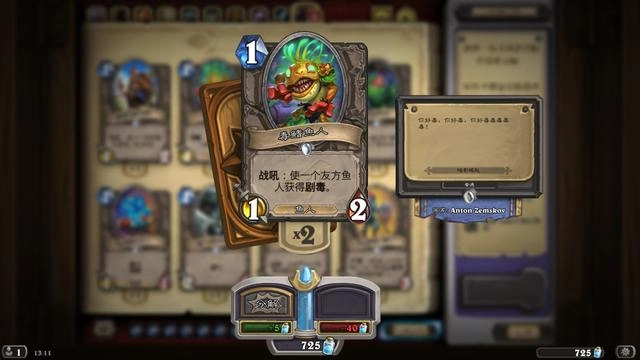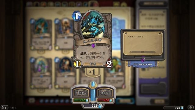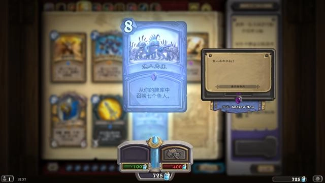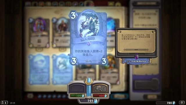 老瞎眼的特效是让场上所有鱼人——在这场乱斗里,就是场上那一堆随从——都获得攻击力加成,而且不分敌我。至于超超超超强力的火车王,那可是能逆转战局的核心卡牌,必须带上。