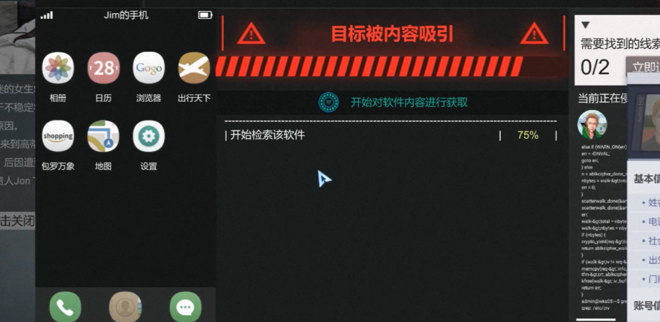 这次对应游戏里的第三章,难度和操作层面比前两关要稍难一些,不过跟后面的内容比起来,这点难度根本不值一提。按照老规矩,还是先打开电脑,从邮件里领取事件主角的个人信息。接下来依旧是那老三样——浏览器、通讯录、数据库,依次用来采集信息。