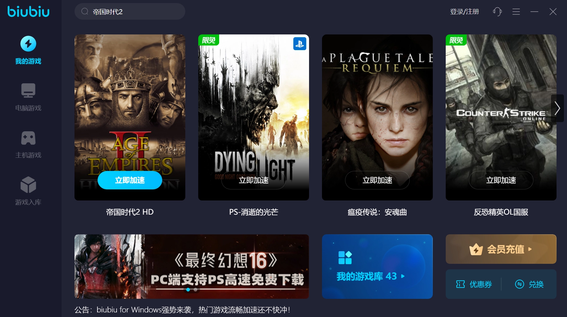 为了适配不同地区的玩家群体,这款加速器针对海外各类游戏区服,推出了覆盖多种游戏类型的专用服务器。在《帝国时代2》里,玩家的核心玩法是通过持续搜集各类资源推动国家发展,因此实时数据的稳定保存至关重要。而biubiu加速器的启用,能够为玩家构建稳定的网络环境,避免因网络波动影响游戏内的各项数据交互,同时也能助力游戏存档快速完成。