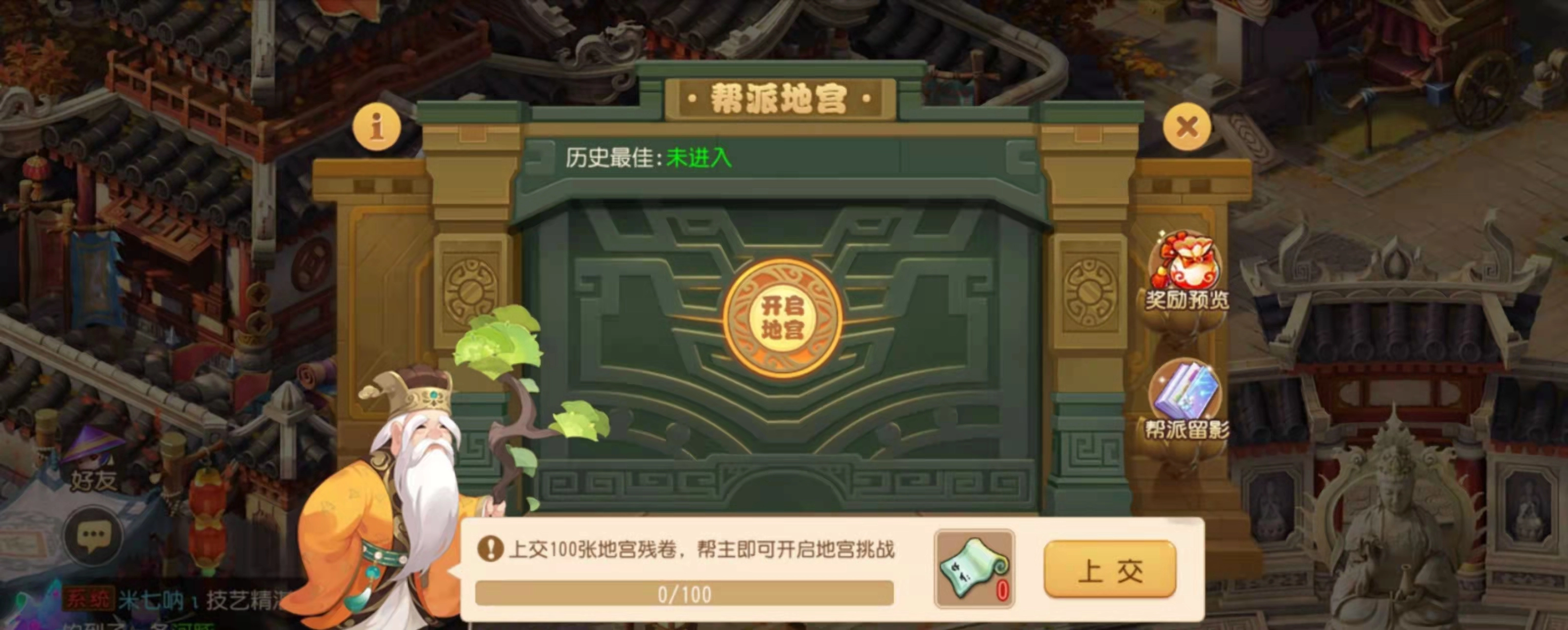 玩家在完成帮派任务和低级藏宝图任务时,有机会获取地宫残卷,并且可以将其上交至帮派。一旦帮派累积的地宫残卷数量达到100张,帮主便具备开启迷宫的资格。