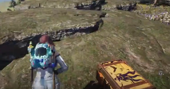 继续朝着传送塔的方向前进,往前行驶一段距离后会看到一个山洞,在山洞上方就能找到第3个箱子,直接打开就行。