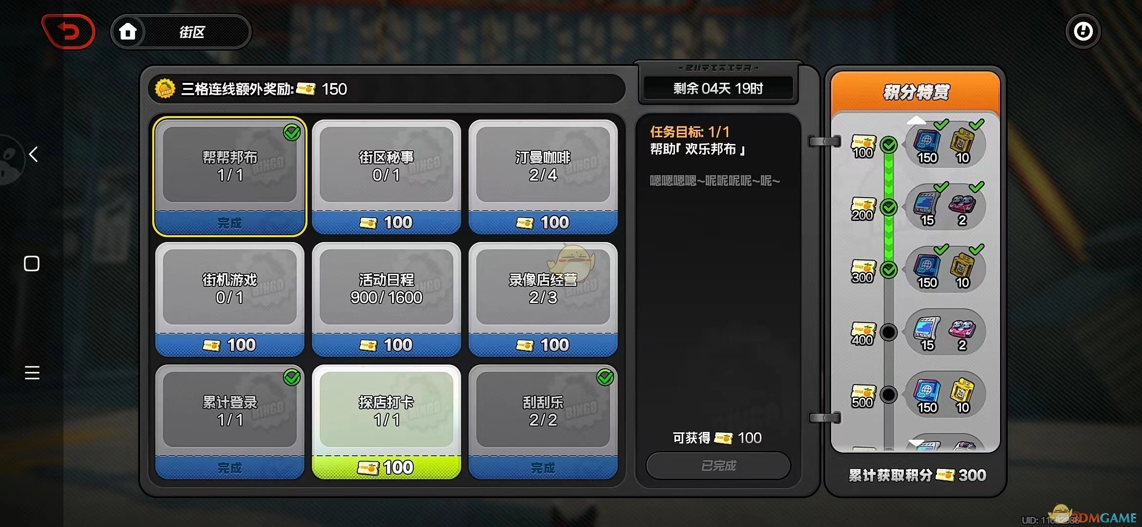 3、接着回到九宫格周常当中,便能看到任务已完成。