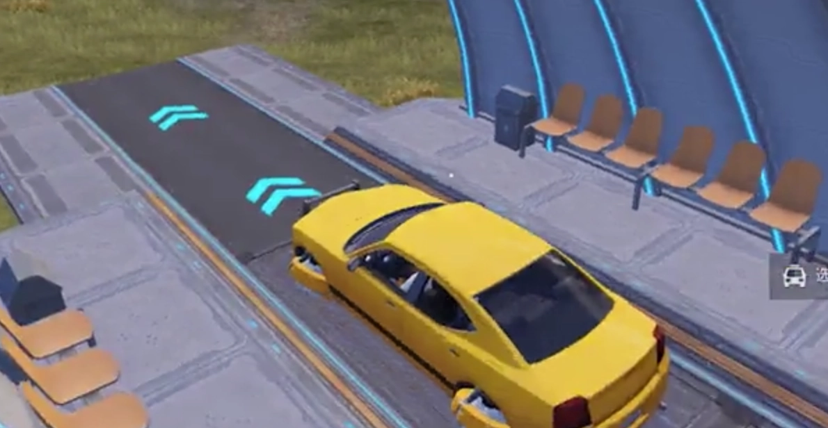 这个模式和哥斯拉模式有几分相似,图上的标记点数量不少。我们逐个来分析一下,首先是最常见的矩阵租车功能,能看到一辆轿车,点击后可以驾驶;接着可以自由选择站点,选好站点就能起飞,车辆会自动行驶到对应站点,沿途还能欣赏到一连串的风景。