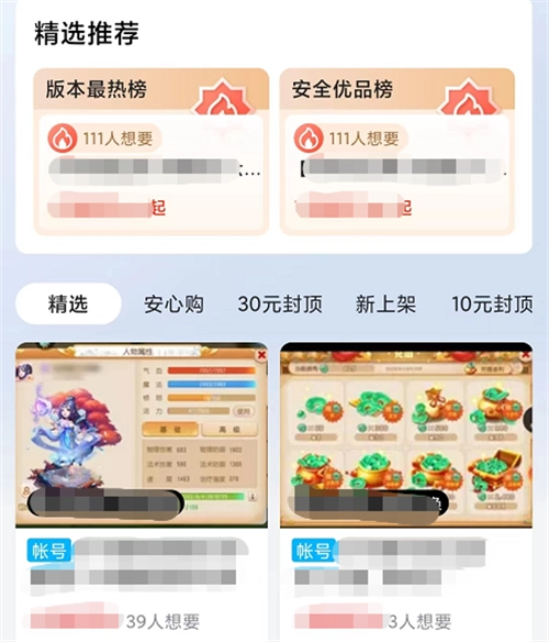 这里除了设有各类热门榜单,还划分了多个特色专栏。像10元封顶专区,就很适合需要控制预算的用户选购;此外还有新上架推荐专区和30元封顶专区,不同专区涵盖的游戏号类型各有侧重,玩家可以根据自身需求灵活选择。