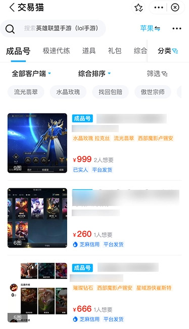 参考同行账号的定价情况,在LOL游戏专区里,买家可以找到各种品质的账号。全英雄账号较为稀缺,但其价格并不昂贵,通常只需几百元就能入手。不久前,就有一位买家以四百五十元的价格,购得了一个拥有全部英雄且附带多款皮肤的账号。除此之外,专区内还有国服账号、高段位账号、传说皮肤账号、退坑账号等多种类型可供选择。