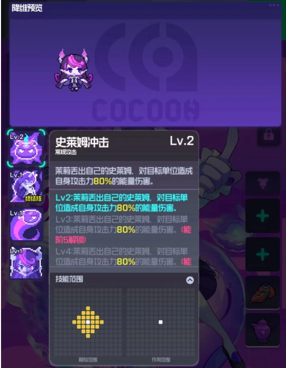 桃瑞丝是当前游戏里T1级别的奶妈,她的技能不仅具备全体治疗能力和亮眼的输出伤害(大招命中敌人后,我方全体会依据造成的伤害得到对应的治疗)!并且在前期敌人没有角色阵亡时,还能触发诅咒效果,有概率使敌人无法攻击。所以这个辅助角色相当值得我们培养。