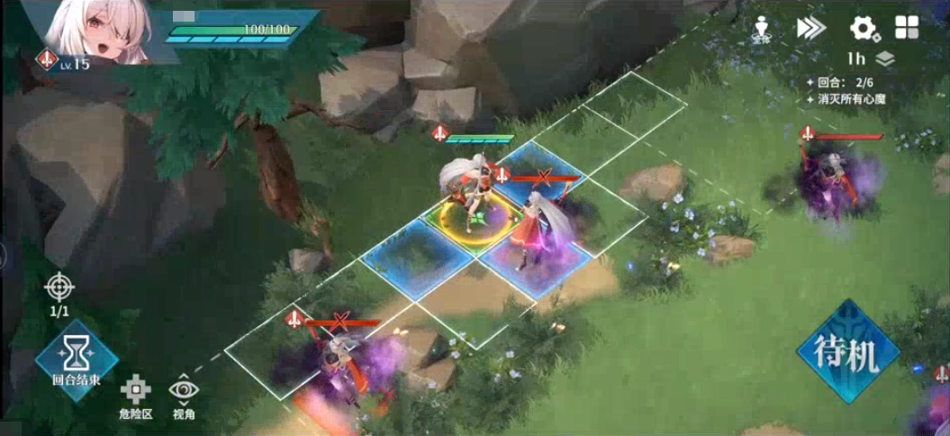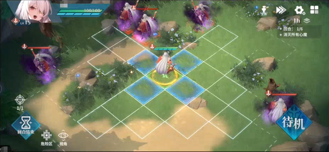 1、第一回合:开局直接移动到1号怪物的左侧发起攻击,之后怪物只会进行短距离的移动。