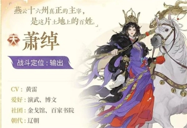 觉醒技能是萧绰的主要爆发来源,对盾类阵容压制力较强。