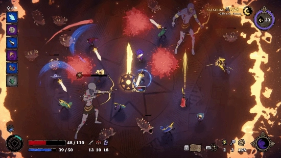 这款游戏最吸引人的卖点莫过于“33人联机”机制。需要说明的是,这并非大逃杀式的玩家互搏,而是33名队友并肩协作挑战Boss。满满的MMO既视感扑面而来,仿佛是把《魔兽世界》里40人的团队副本,巧妙地融入到了俯视角肉鸽游戏的框架之中。