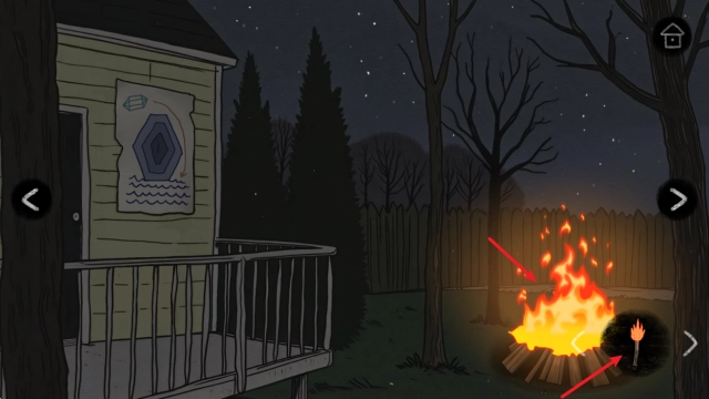 6. 二楼右一门进入露台,对篝火使用木棍获得火柴。右转蜥蜴处获得撬棍,灯泡。