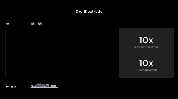圆柱和方形到底孰优孰劣,这个确实很难吵明白。但特斯拉推崇的干法电极这一工艺,在行业上还有蛮有意义的。