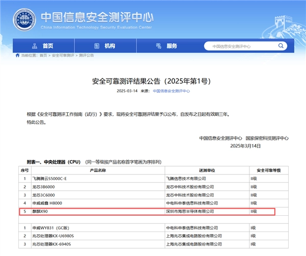 这表明麒麟X90在核心技术自主可控性、供应链安全保障能力、知识产权合规管理等维度经受住了严格审核,满足国家信息安全相关规范要求。