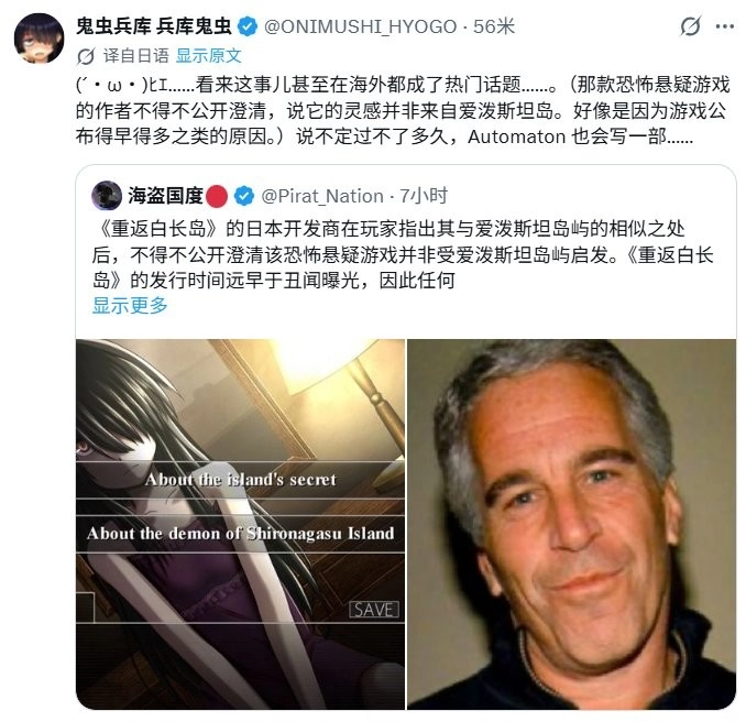 近日,日本独立游戏工作室鬼虫兵库通过社交媒体发布声明,就旗下热门独立悬疑游戏《重返蓝鲸岛》相关传言进行澄清,明确表示该作品与现实中的爱泼斯坦案及其私人岛屿不存在任何关联。