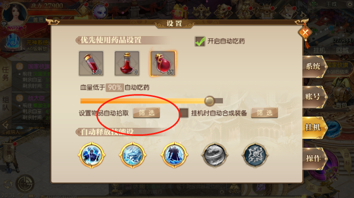 有时候我们站位挺好,但捡东西的速度特别慢,稍微晚一点点击屏幕,装备就被别人抢走了。遇到这种情况,我建议大家开启自动战斗模式,开启后系统会自动帮我们第一时间拾取掉落的物品。