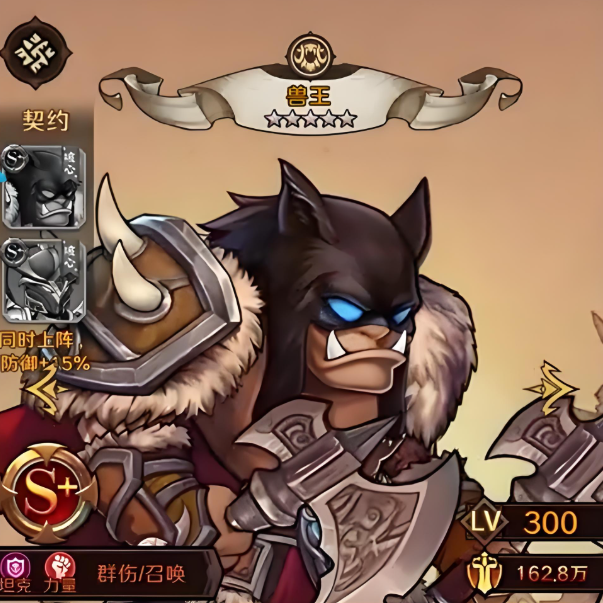 第二个要讲的是兽王,它的强度源于自身独特的机制。兽王的技能能召唤出若干个召唤物,当兽王开启大招时,这些召唤物会触发践踏效果,既能对敌人形成控制,又能造成伤害。此外,兽王的防御属性十分出色,它自己和召唤物都能替队友承受伤害,从而为整个队伍营造出有利的输出条件。