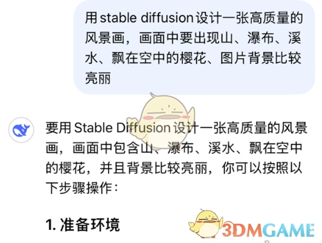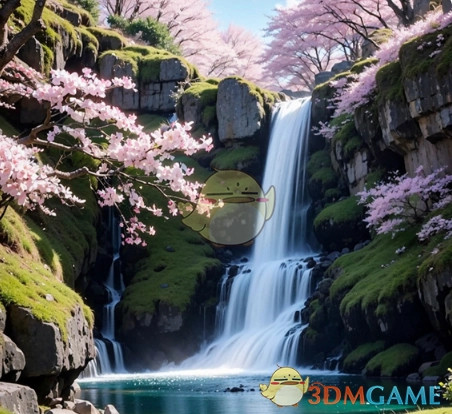 3、举个例子:借助Stable Diffusion来创作一幅高质量的风景画,画中要有山、瀑布、溪水以及在空中飘舞的樱花,同时背景需较为亮丽。