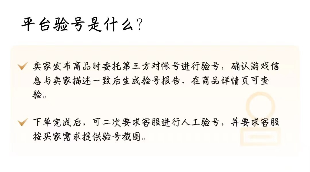 针对首次交易的用户可能对账号真实性存疑的情况,平台一般会要求在售账号预先完成详细检测。验号服务由专业机构全程负责操作,通过验证的账号会得到一份报告,表明账号不存在问题。所以,用户在购买时可以优先挑选经过详细检测和验证的账号,以此保障账号的真实性与合法性。这一环节能够帮助增强用户对交易安全性的信任。