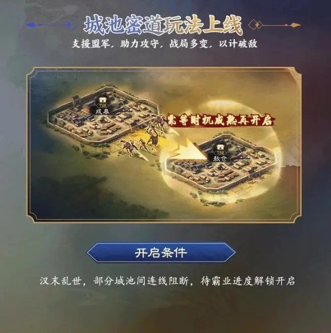 就是霸业进度解锁城池连线,前期1V1,某些霸业进度推进之后才可以恢复一些连线,支援队友。