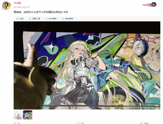 1月3日,知名画师@Shi咪在一则视频里分享了她的一段疯狂经历:为庆祝游戏新版本上线,她挑战在3天内完成一幅130平方米的《鸣潮》主题墙绘。